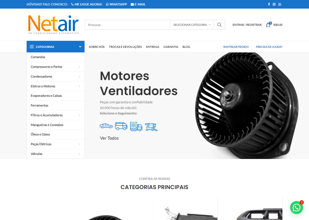 E-commerce de peças para ar condicionado automotivo. Com blog 100% otimizado para o SEO.