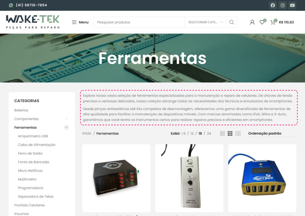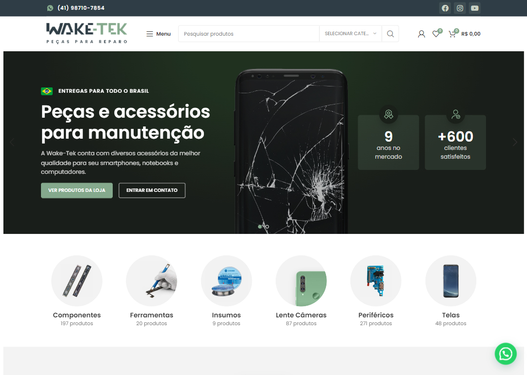 E-commerce de peças para manutenção de celulares, com variações de peças para cada modelo e checkout personalizado.
