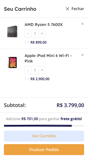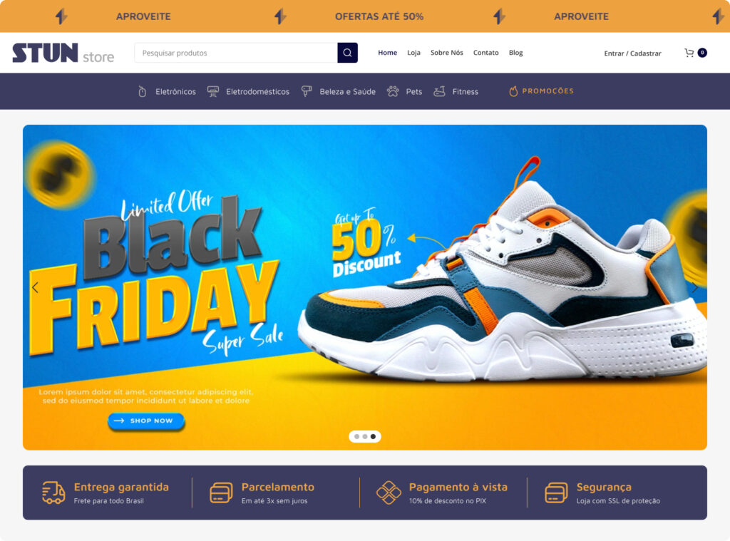 Elementos que se encaixam perfeitamente ao layout, aliando o visual com a usabilidade, um conjunto pensado pra sua loja vender melhor.