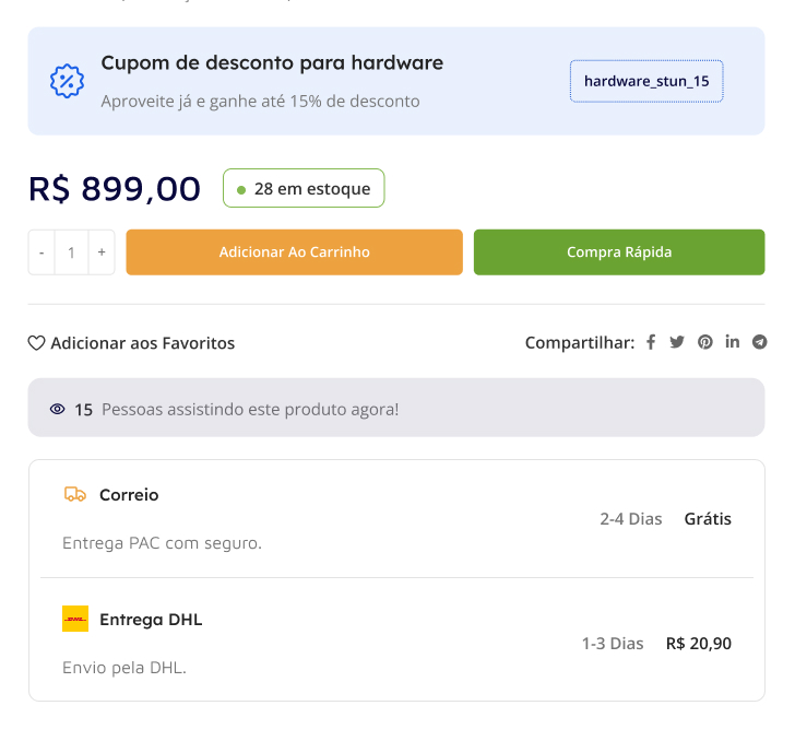 - Cálculo de frete na página do produto