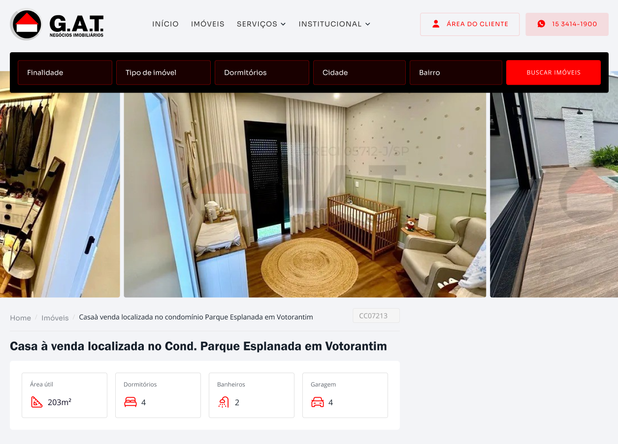 Integrado ao sistema, filtro dinâmico de anúncios, area do cliente e infos institucionais.